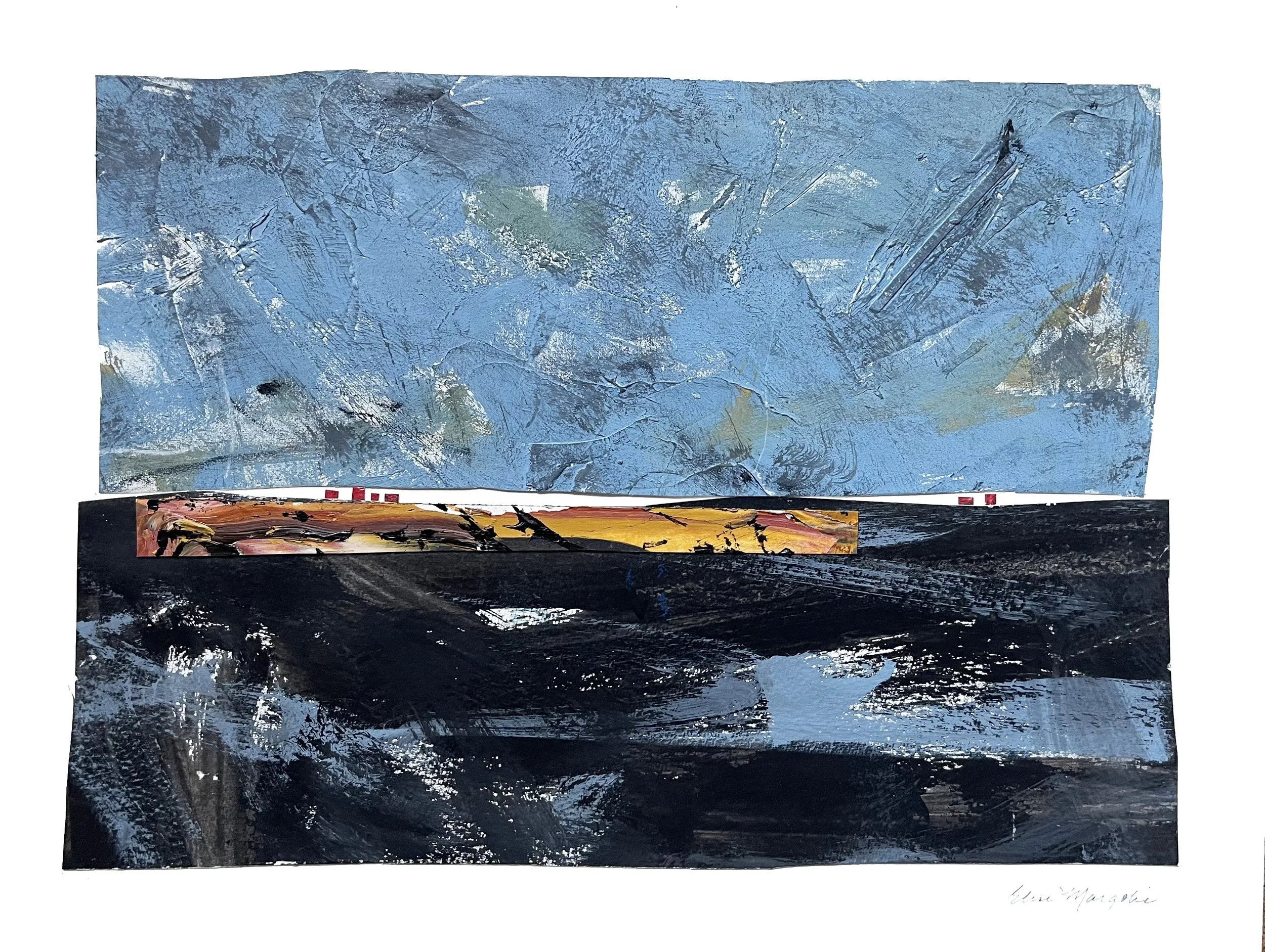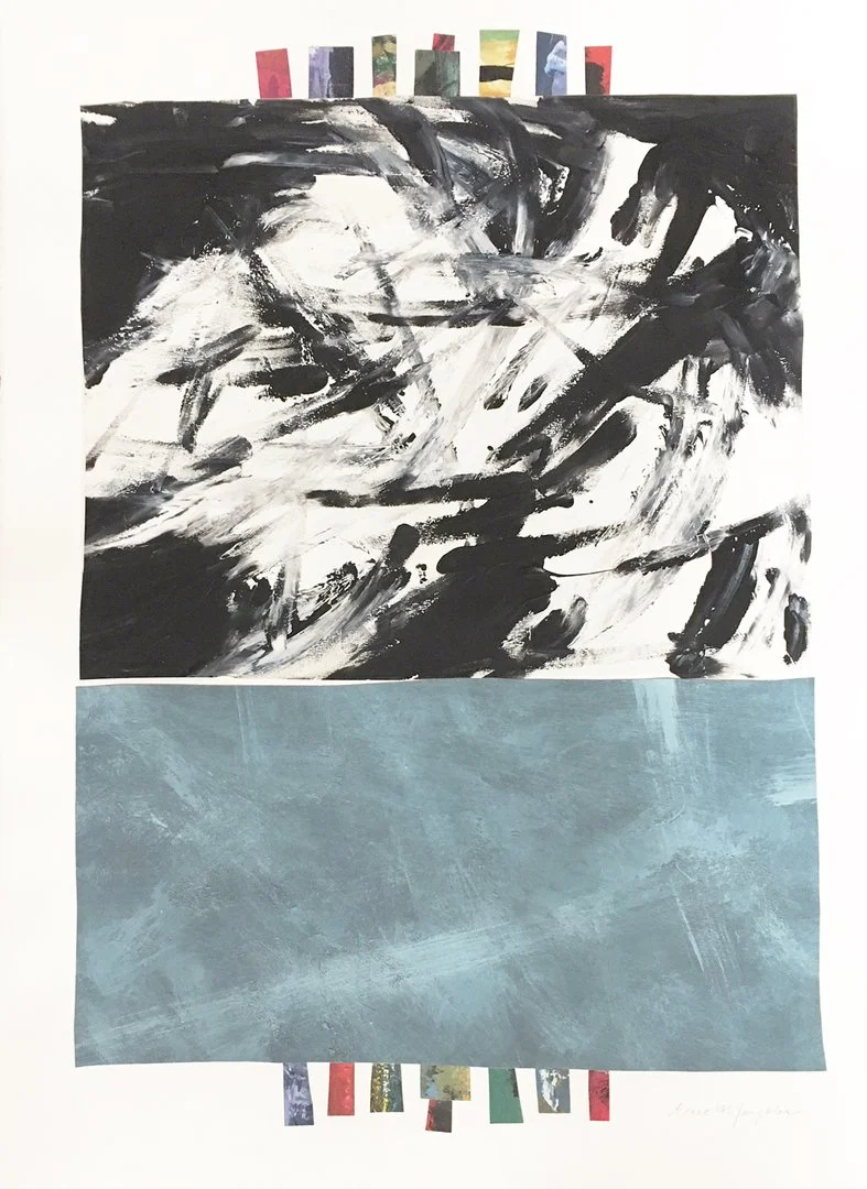 This work combines my passion for both painting and collage. Using my deconstructed paintings, I challenge myself to reassemble the cut-up pieces of different paintings to create fresh new works. This is both an exhilarating and frightening experience for me because, in essence, I am destroying finished pieces to create something new and unexpected.